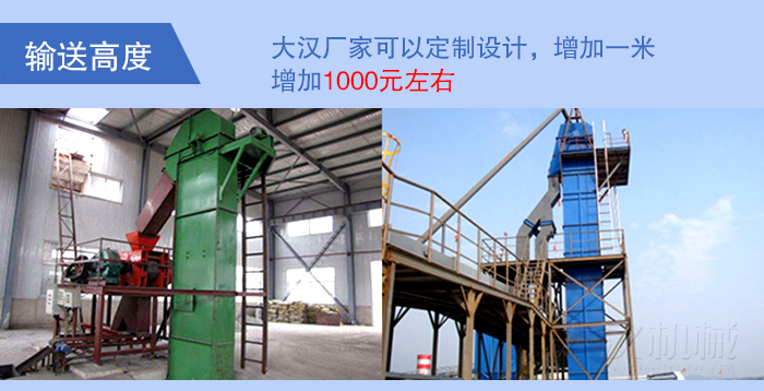 大漢鏈斗式提升機(jī)可以按照用戶的輸送高度要求設(shè)計(jì),一般情況下,增加一米,鏈斗式提升機(jī)價(jià)格就會(huì)增加1000元左右。