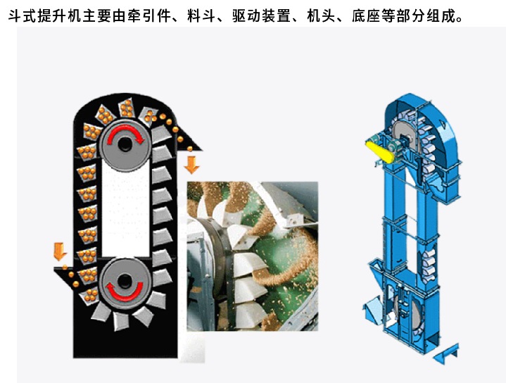 環鏈斗式提升機主要是依靠固定在鏈條上的料斗,將均勻流入尾部進料口的物料從斗式提升機尾部不間斷地提升到斗式提升機頭部,并 然后從機頭出口卸下物料,完成整個物料提升過程。適合輸送堆積密度小于1.5t/m³易于掏取的粉狀、粒狀、小塊狀的低磨琢性物料 ,如:煤、水泥、碎石、砂子、化肥等,比普通機型提高30%以上。